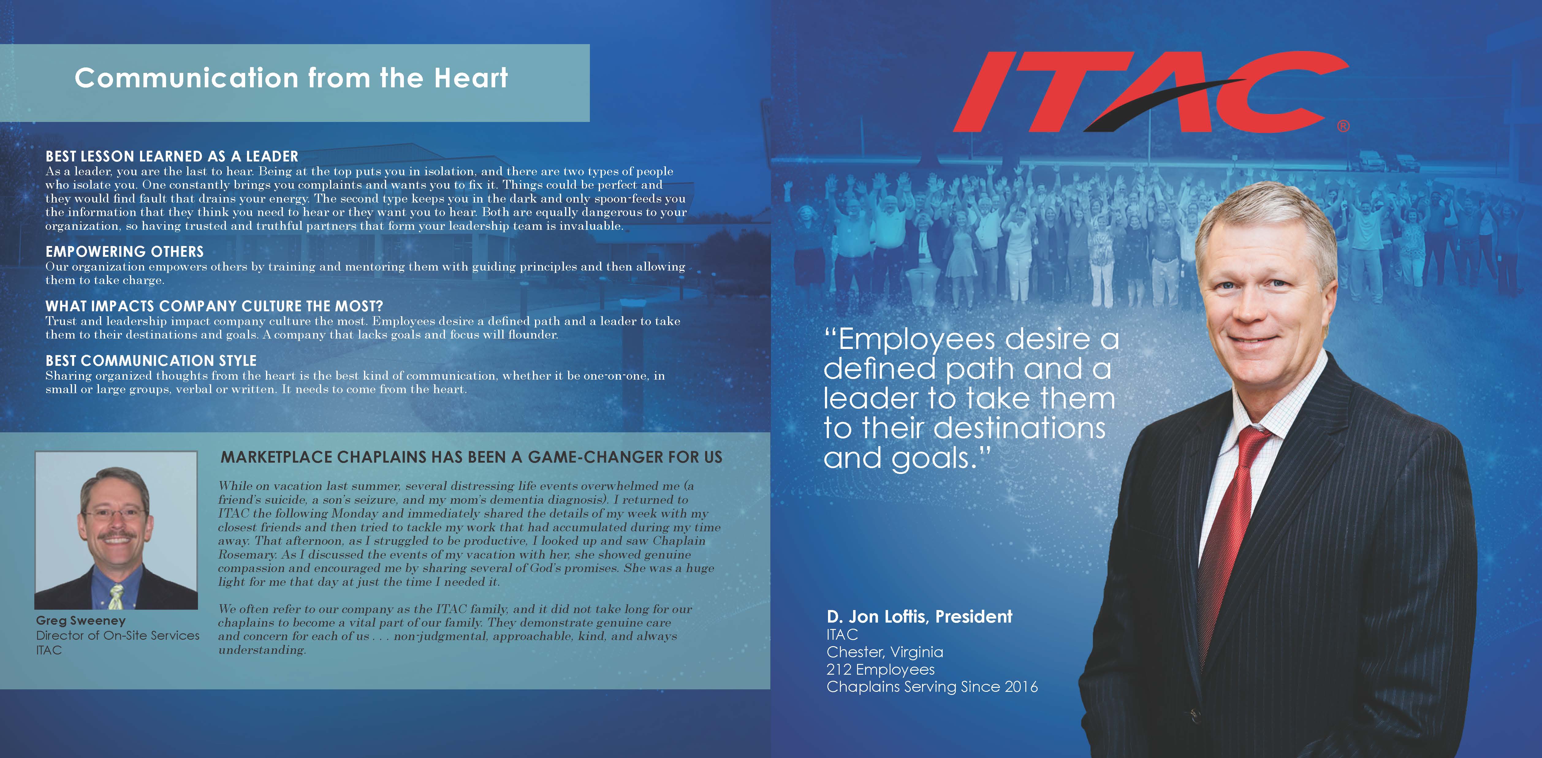 Welcome to our second edition of MPACT. The previous edition shared stories from 16 chaplains regarding amazing transformation in the lives of company employees we serve. In this edition, we share insights from company leaders who have our chaplains serving their employees.